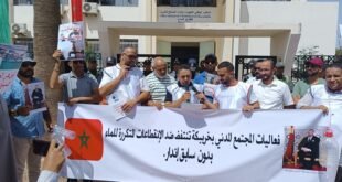 نظمت فعاليات من المجتمع المدني وقفة احتجاجية أمام المكتب الوطني للكهرباء والماء الصالح للشرب “قطاع الماء” احتجاجا على الانقطاع المتكرر للماء بمدينة خريبكةوقد عرفت مدينة خريبكة انقطاعات متكررة للماء خلال الأسبوع الفارط ، يصل بعضها لأكثر من 24 ساعة، مع ضعف كبير في الصبيب حيث تعاني أغلب الأحياء من انعدام …